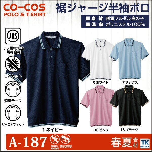 CO-COS コーコス半袖ポロシャツ(胸ポケット付)裾ジャージ 商品の詳細 裾ジャージで体に程よくフィットし適度な引き締め効果のあるポロシャツ。