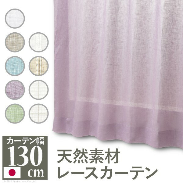 天然素材レースカーテン 幅130cm 丈133〜238cm ドレープカーテン 綿100% 麻100% 日本製 9色 12901452