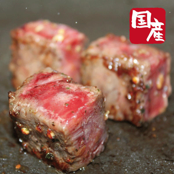 国産牛サイコロステーキガーリックバジルソース和え300g【バーベキュー】【BBQ】【焼肉】【かどや牧場】