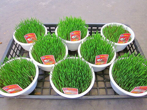 ペットグラス 1ケース8鉢入り(大きめの5号鉢) ワンワン、ニャンニャンが大好きなお腹をケアする、整腸作用抜群の安心・安全な草です。