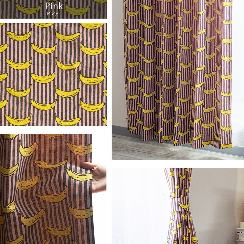 カーテン サイズオーダー 幅151〜200cm 丈151〜200cm【YH805】バナナボート [1枚] バナナ ストライプ 個性的 フルーツ フルーツ柄 果物 おしゃれ かわいい ストライプ柄 寝室 リビング ダイニング 子供部屋 子供 ピンク グリーン 緑 OKC