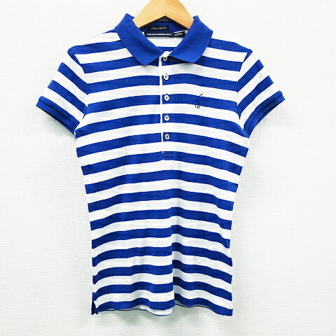 RALPH LAUREN GOLF ラルフローレンゴルフ TAILORED FIT 半袖ポロシャツ ボーダー ブルー系 XS 【中古】ゴルフウェア レディース